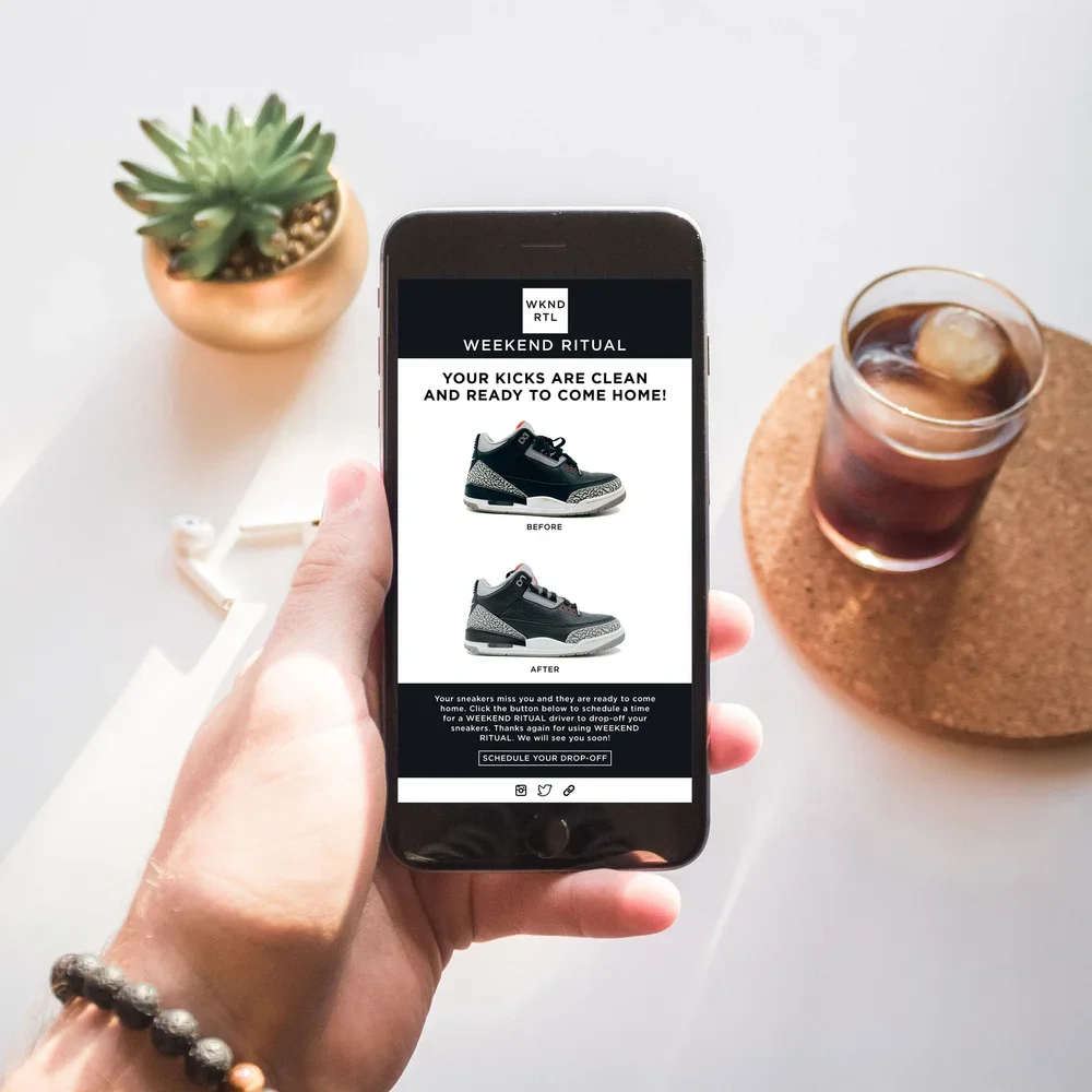 we will notify you with before and after photos and a link to schedule your sneaker pick-up.
